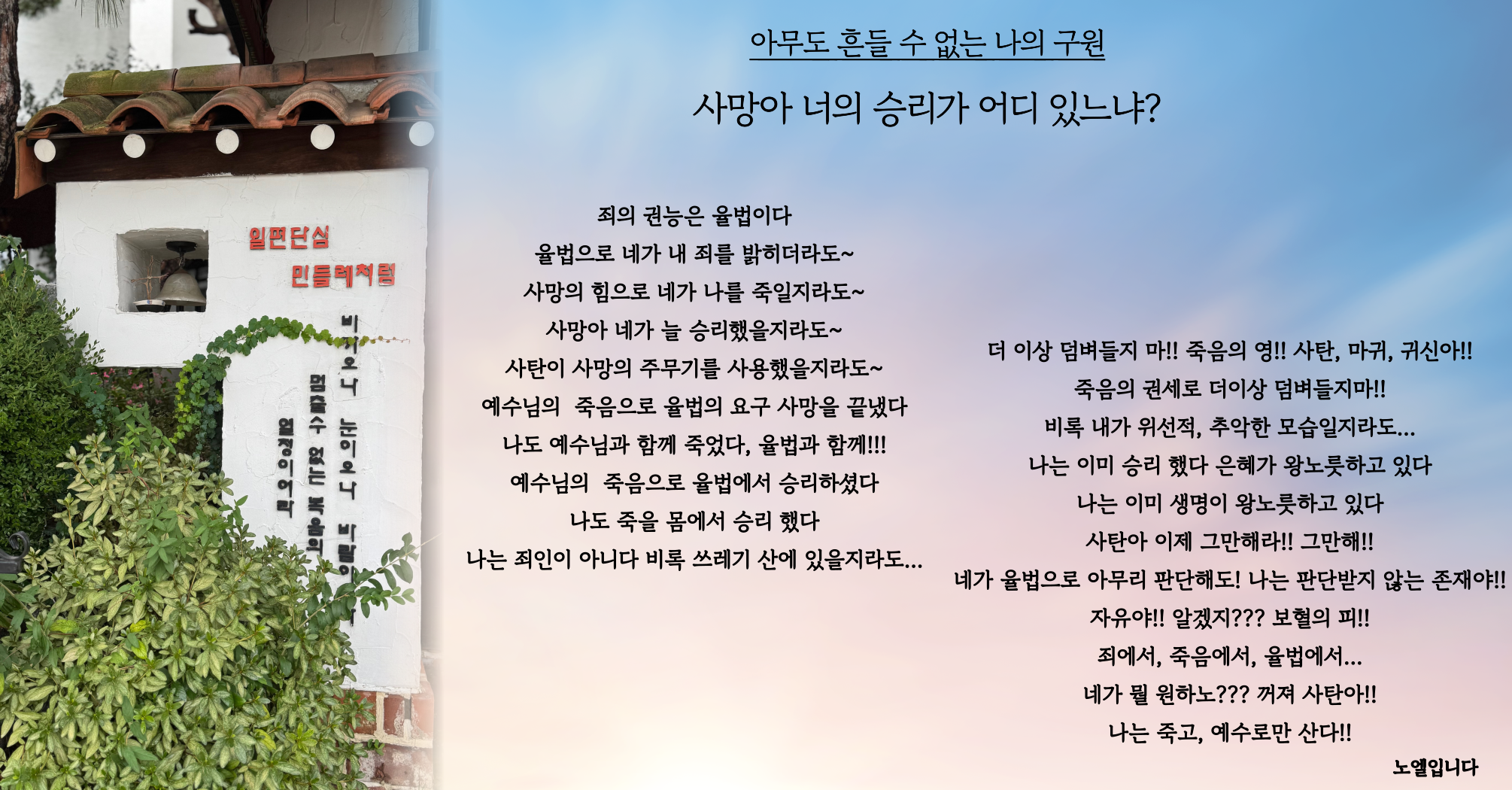 아무도 흔들수 없는 나의 구원, 사망아 너의 승리가 어디 있느냐?