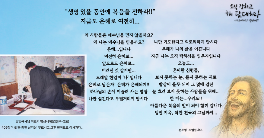 생명있을 동안에 복음을 전하라!! 지금도 은혜로 여전히