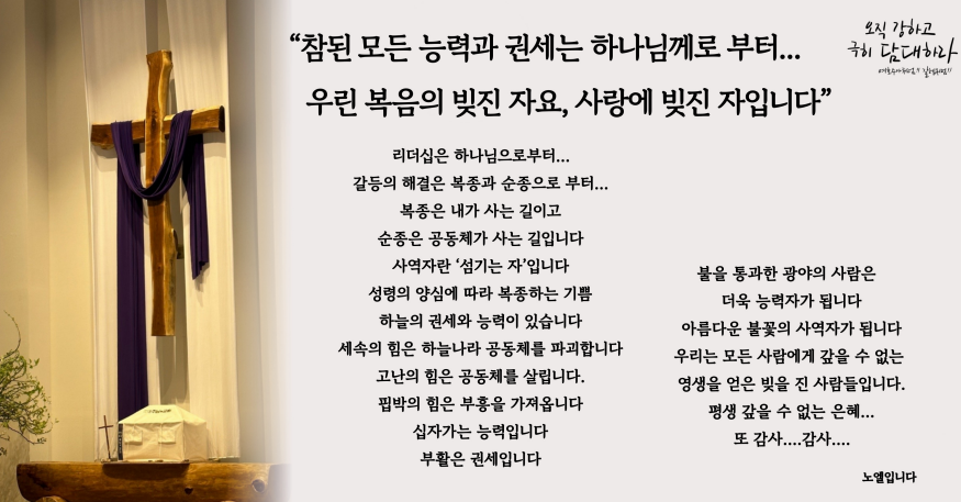 참된 모든 능력과 권세는 하나님께로부터... 우린 복음의 빚진자요, 사랑에 빚진자...